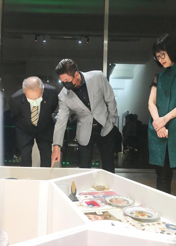 The VIPs — including CTBC Financial Holding Co (中信金控) president Daniel Wu (吳一揆), chief administration officer Roger Kao (高人傑), institutional and international business CEO Tony Yang (楊銘祥), retail banking executive vice president Amy Yang (楊淑惠), CTBC Charity Foundation chairman Jeffrey Koo Jr (辜仲諒), and CTBC Foundation for Arts and Culture chairman John Feng (馮寄台) — spent the evening contemplating and discussing works by 57 participating artists and groups from 27 countries.