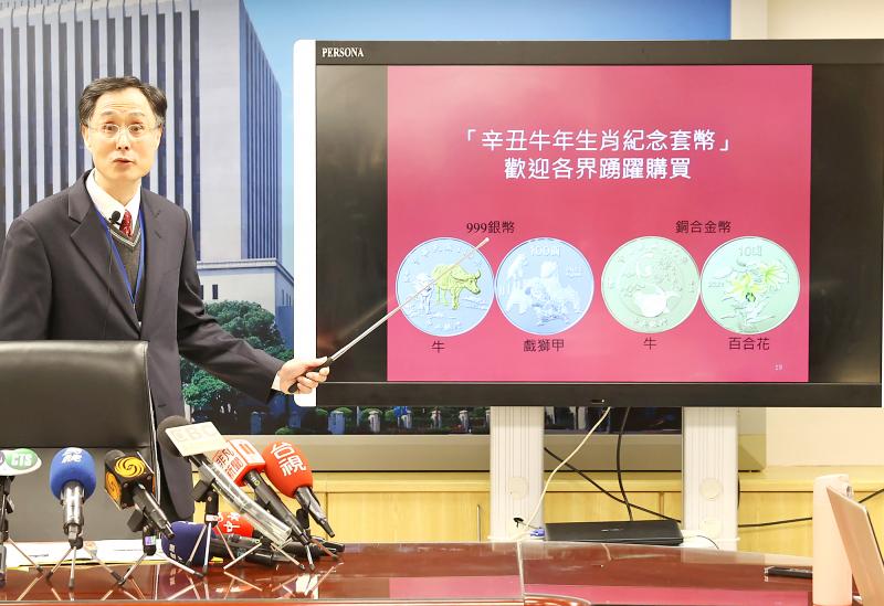 The central bank yesterday unveiled a set of Chinese zodiac commemorative coins for the Year of the Ox, which are available to order online through Wednesday next week or at Bank of Taiwan (臺灣銀行) branches nationwide from Jan. 21.