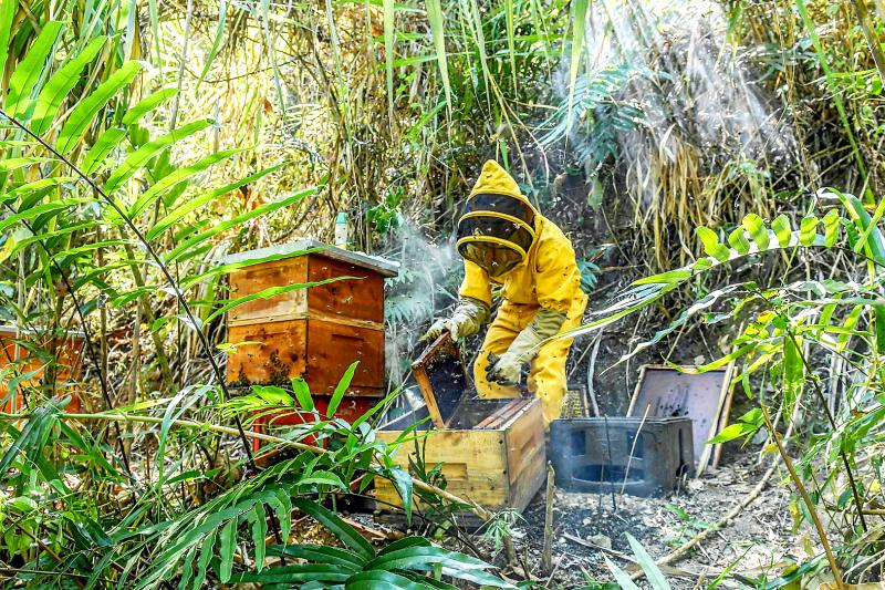 Urrego’s apiary in Colombia’s Antioquia Department produces honey flavored with pollen from nearby passion fruit orchards. In 2019, he lost 10 of his 19 hives.