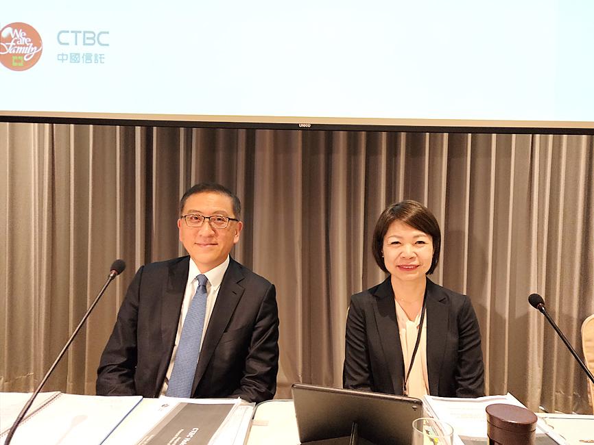 Chiu said that CTBC’s banking arm, CTBC Bank (中國信託銀行), is expected to regain momentum this year after reporting a year-on-year net profit decline of 11.8 percent last year to NT$27.26 billion.