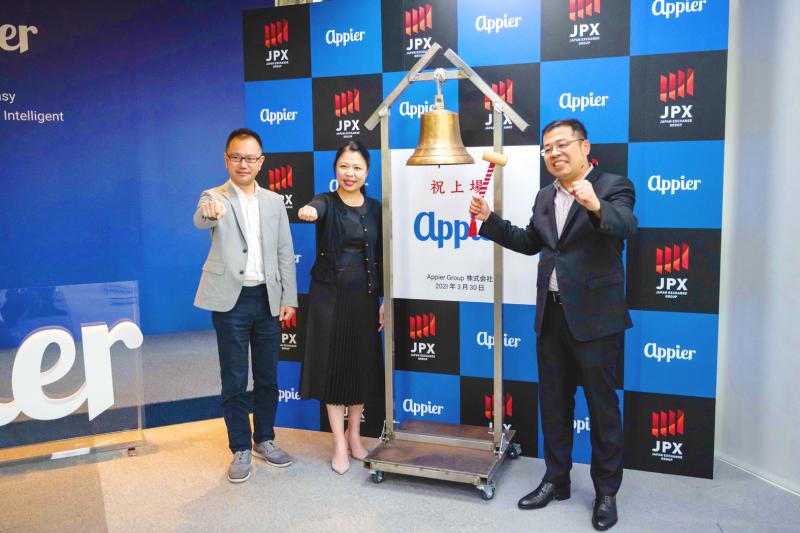 Shares of Appier Group Inc (沛星互動科技), which offers artificial intelligence (AI)-based software, yesterday rose above their listing price in the company’s trading debut on the Tokyo Stock Exchange, proceeding to raise ¥29.8 billion (US$271 million) in an initial public offering (IPO) priced at the top of its marketed range.