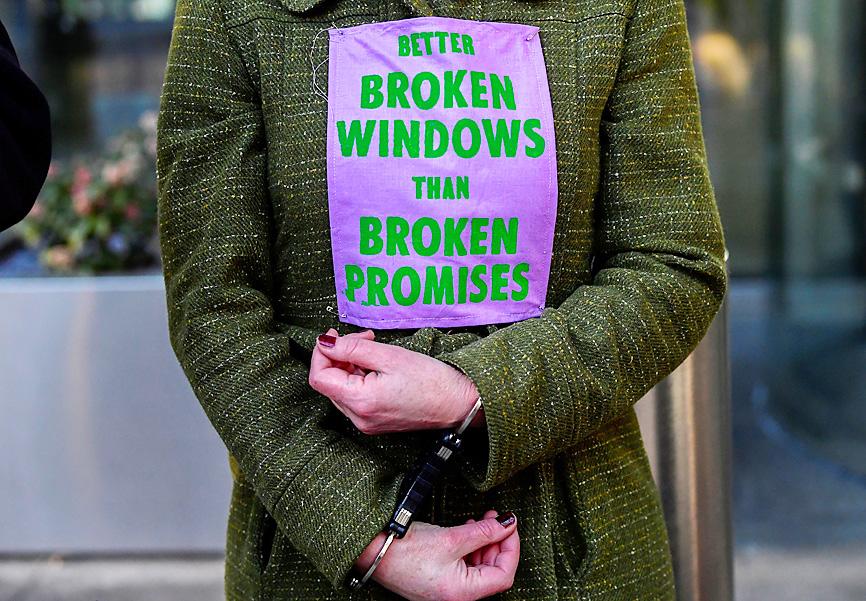 “You may dislike our action today, but I ask you to compare a crack in a window to funding wildfires and flooded homes,” said Sophie Cowen, a 30-year-old campaigner from London.