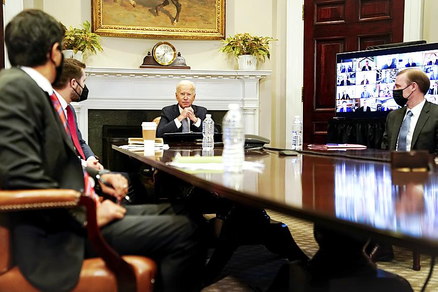 Taiwan Semiconductor Manufacturing Co (TSMC, 台積電), the world’s largest contract chipmaker, on Monday took part in a virtual White House summit about a global semiconductor shortage and Washington’s plans to strengthen US supply chains.