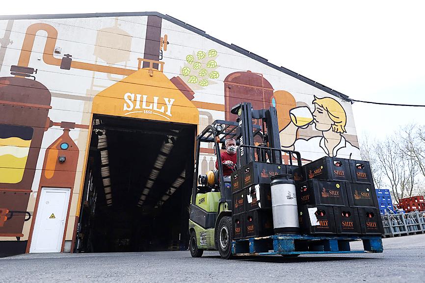The Silly brewery dominates the village of just more than 7,000. In normal times it produces 2.5 million liters per year — pale ales, saison, abbey beers, fruit beers, Pilseners, wheat beers and Scotch ale. As reporters toured the plant, a local farmer pulled up in a tractor to collect a trailer-load of distillers grains — dried barley mash left over by the brewing process — to feed his livestock.