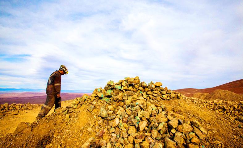 Hugo Moroso individually selects rocks he extracts from the small Kiara copper mine in the Vicuna Mackenna mountain range of northern Chile, home to the largest copper deposits in the world.