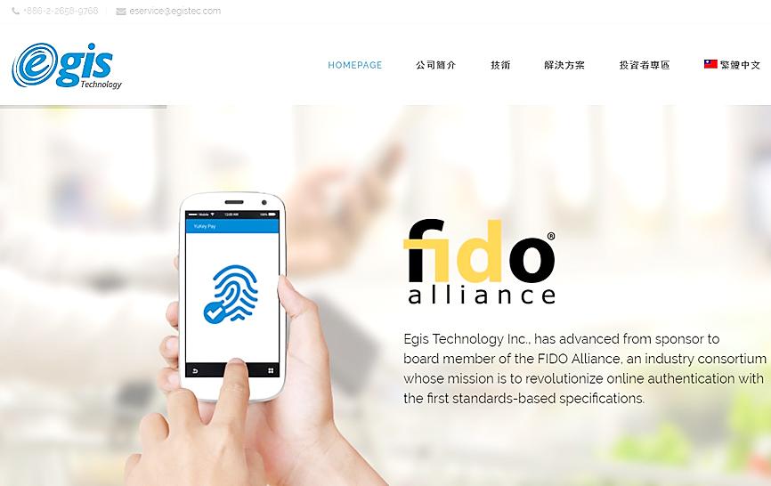 Photo: Screen grab from Egis Technology Inc’s Web site