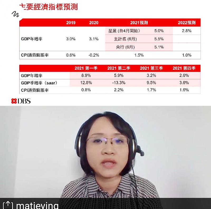 Even the pandemic has weakened private consumption, DBS maintained its forecast that the Taiwanese economy would grow 5 percent this year, as stronger-than-expected manufacturing, exports and investment should offset the impact on domestic consumption, Ma said.