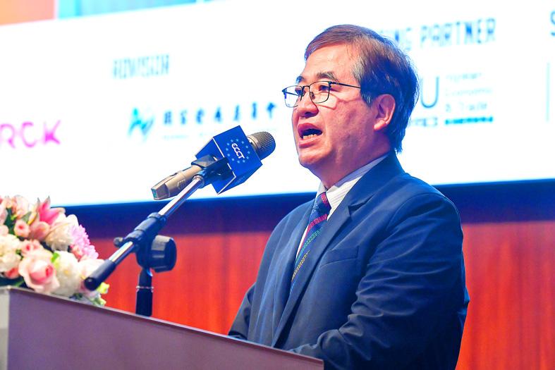 Taiwan International Ports Corp (台灣港務) vice president of engineering Wang Chin-jung (王錦榮) said that the company aims to boost the total container throughput of the seven ports to 15.66 million to 18.22 million twenty-foot equivalent units (TEUs) by 2026.