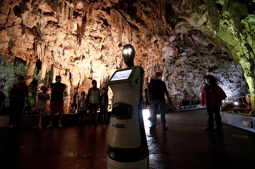 The multilingual robot covers the first 150m of the part of the cave that is open to the public. In the remaining 750m, a human guide takes over.