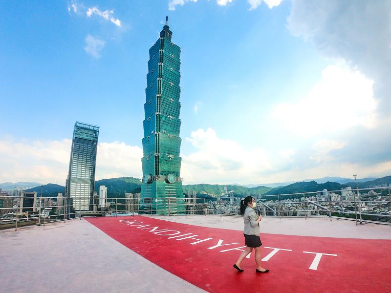Grand Hyatt Taipei (台北君悅酒店) in the city’s prime Xinyi District (信義) for the first time is to open its rooftop helipad for room guests to visit for an extra charge of NT$100 per person.
