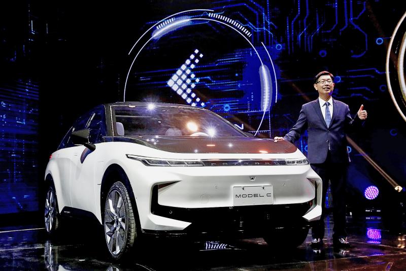 Speaking to reporters after the introduction of the three EV prototypes, Hon Hai chairman Young Liu (劉揚偉) said that the company, known as Foxconn Technology Group (富士康科技集團) globally, expects its EV business to begin generating revenue next year at the earliest.
