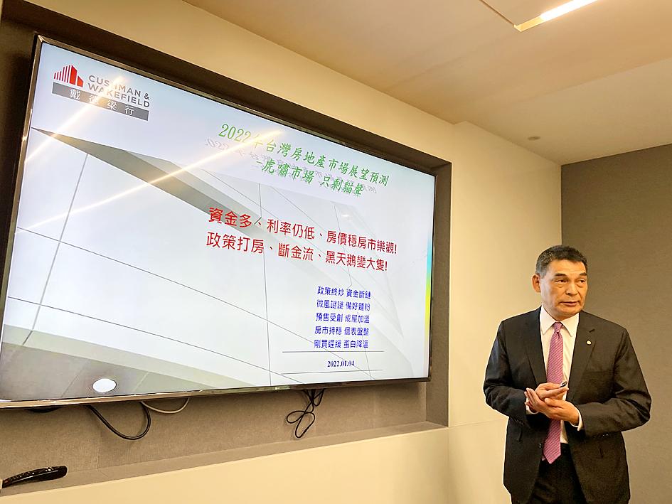 Cushman & Wakefield Taiwan managing director Billy Yen (顏炳立) said that housing prices are unlikely to fall in the foreseeable future, given the mounting cost of land and building materials.