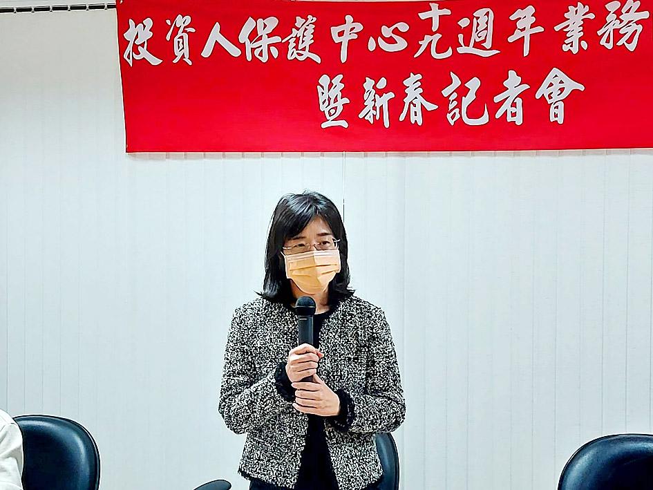 The center filed a lawsuit against Pharmally International at the Taipei District Court on behalf of 4,700 investors, seeking total compensation of NT$5.4 billion (US$195.17 million), center chairwoman Chang Hsin-ti (張心悌) told a news conference in Taipei.