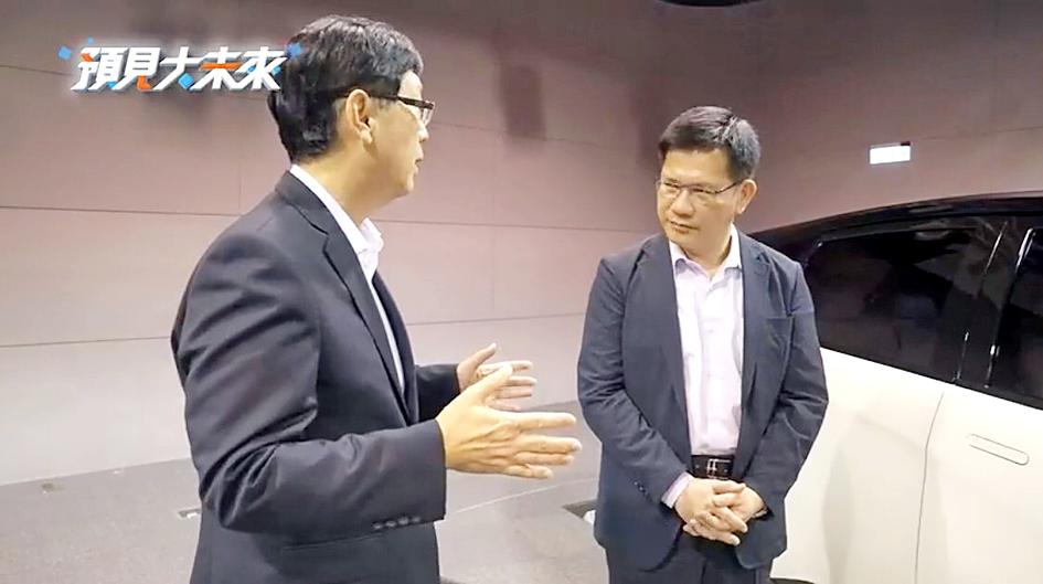 In a video released by Hon Hai, company chairman Young Liu (劉揚偉) told former minister of transportation and communications Lin Chia-lung (林佳龍) that he expects the local manufacturing sector to make about 90 percent of parts used by batteries, electric devices and power control solutions for Taiwanese-made EVs by the end of 2024.