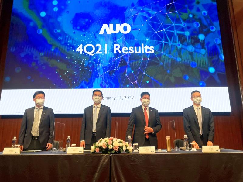 AUO reported a record NT$61.33 billion in net profit for last year, up 1,716.5 percent from a year earlier, with earnings per share of NT$6.44, compared with NT$0.36 in 2020.