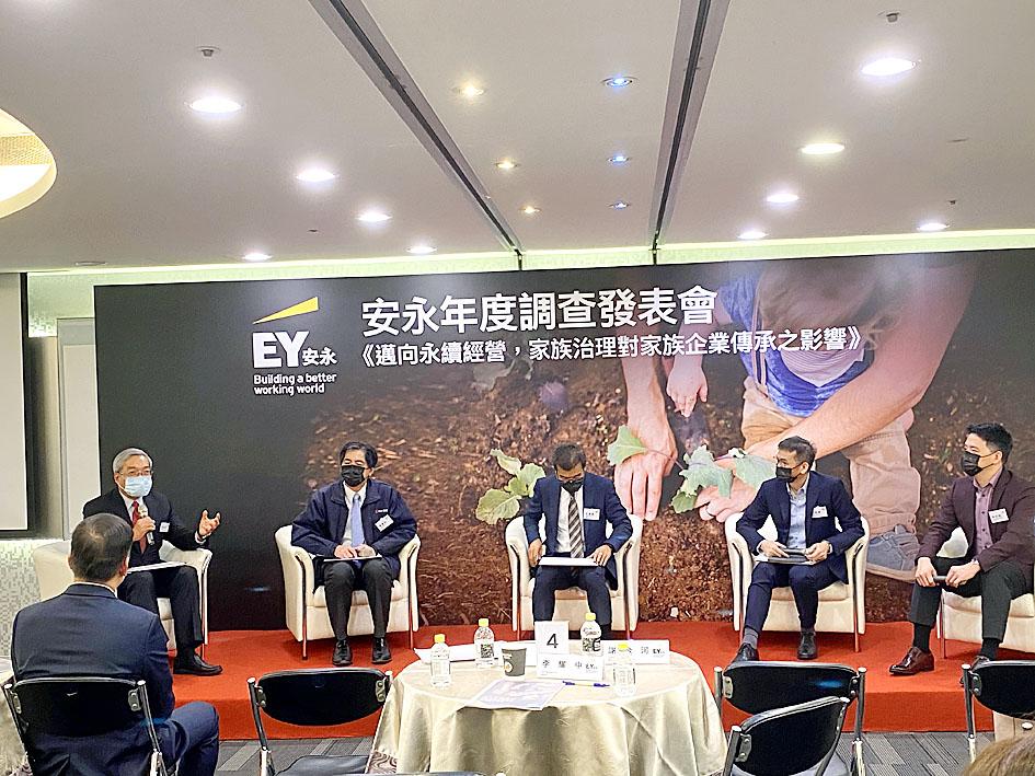 Several guests invited by Ernst & Young Taiwan, including Investment Media Ltd (財信傳媒) chairman Hsieh Chin-ho (謝金河), Chong Hong Construction Co (長虹建設) president Lee Yao-chung (李耀中), KMC Kuei Meng International Inc (桂盟國際) chairman Robert Wu (吳盈進) and Chiu Yi-chia (邱奕嘉), vice dean of the College of Commerce at National Chengchi University, also shared their views regarding business succession at the conference.