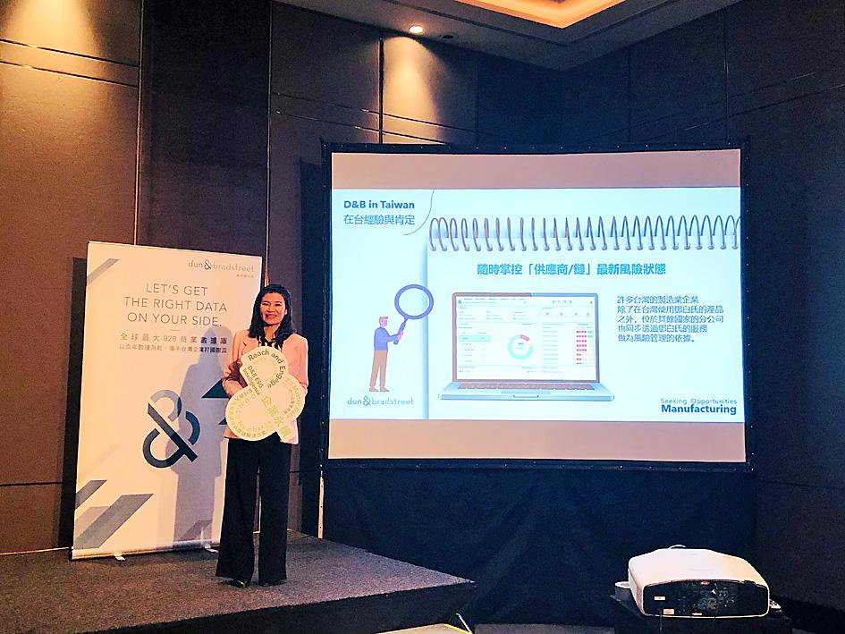 “ESG has obviously become the entry ticket for small and medium-sized enterprises to the global supply chain, but the evaluations are not standardized in the market,” D&B Taiwan (鄧白氏台灣) general manager Michelle Sun (孫偉真) said in the statement.