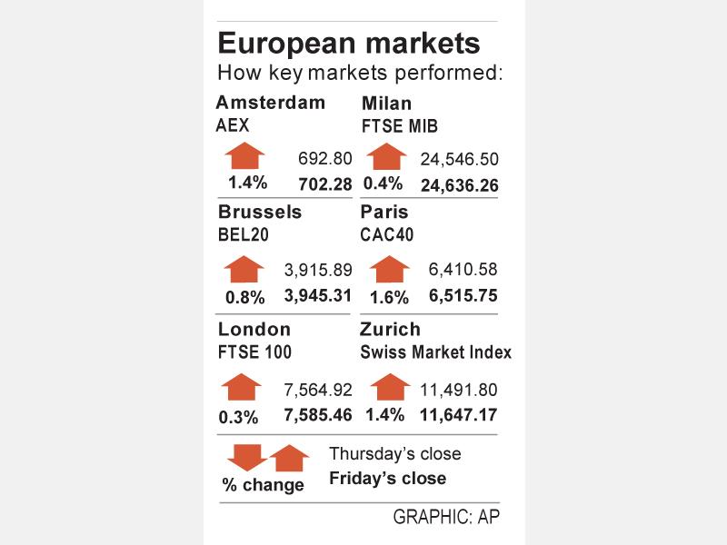 The pan-European STOXX 600 rose for a third straight session, closing up 1.5 percent, taking weekly gains to 3 percent. Germany’s DAX ended at an over one-month high, up 1.6 percent.