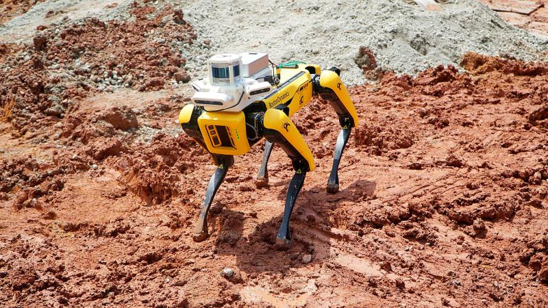 At a Singapore construction site, a four-legged robot called Spot, built by US company Boston Dynamics Inc, scans sections of mud and gravel to check on work progress, with data fed back to Gammon Construction Ltd’s control room.