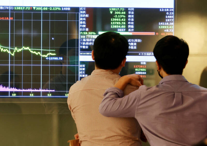 “As the TAIEX failed to sustain itself above 13,928 points today, the main board has become technically fragile,” MasterLink Securities Corp (元富證券) analyst Tom Tang (湯忠謙) said. “The weakness simply reflects worries that the Fed will continue to act aggressively after a 75-basis-point rate hike in September.”