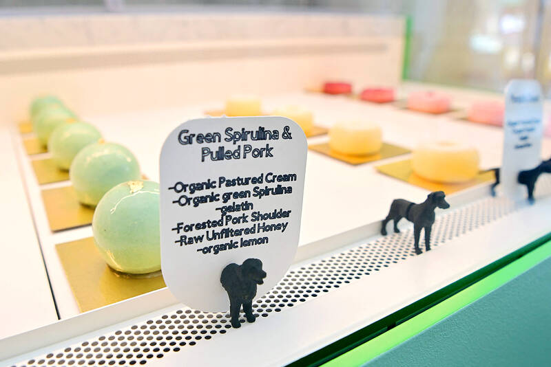 During the week, that means an extensive selection of immaculately crafted pastries from the “pawtisserie,” naturally, washed down with one of three “dogguchinos” — creamy creations infused with spirulina or charcoal. On Sundays, Dogue transforms into the Bone Appetite Cafe, where pup patrons can sample a three-course tasting menu for US$75.
