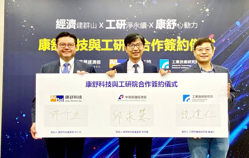 The Industrial Technology Research Institute (ITRI, 工研院) and power management company AcBel Polytech Inc (康舒科技) on Tuesday signed a contract in a bid to develop next-generation electric vehicle power devices, the Ministry of Economic Affairs said.
