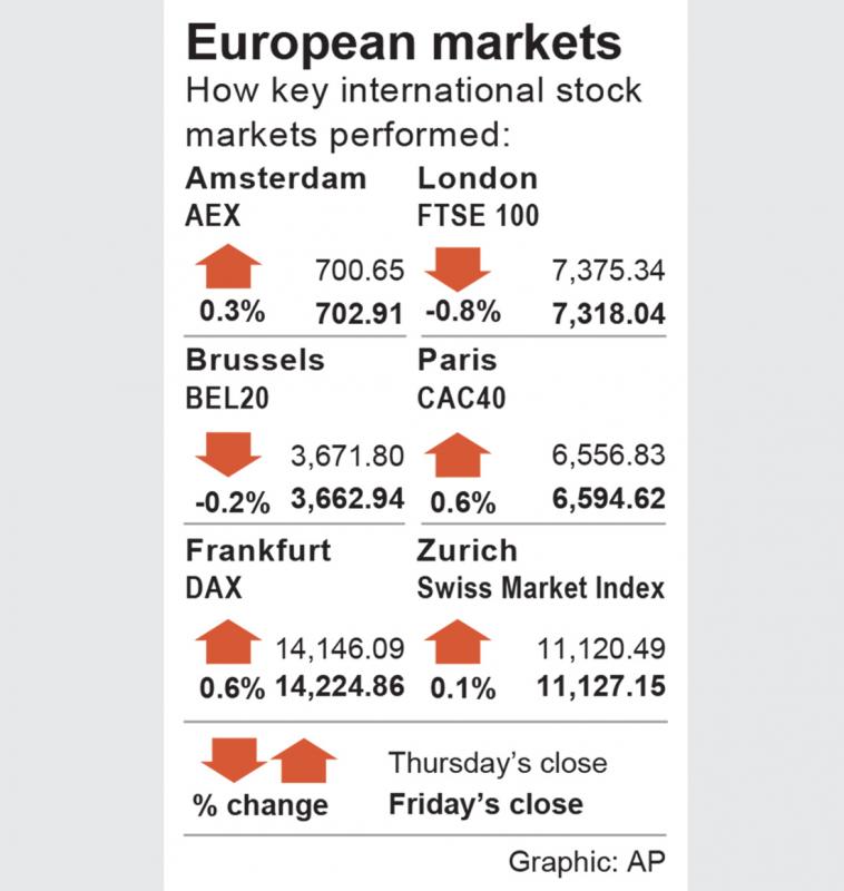 In the UK, the export-oriented FTSE 100 on Friday fell 0.78 percent to 7,318.04, hurt by a stronger pound, after data showed a smaller-than-expected contraction in the British economy, although mid-cap stocks marked their best week in almost two years. The index was down 0.23 percent from a week earlier.