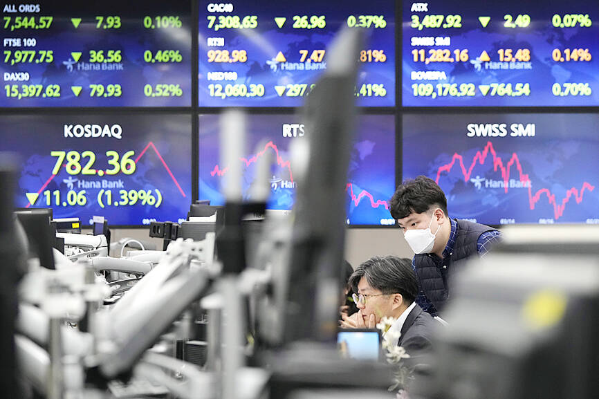 Banking stocks in China and India bucked a broader weakness in the sector amid low exposure to the US. Industrial and Commercial Bank of China (中國工商銀行) rose as much as 3 percent, while India’s ICICI Bank Ltd advanced 1.5 percent.