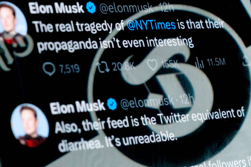 Musk, who has been promulgating a US$8-per-month Twitter Blue subscription as the main way to remain verified on the social network, responded by lashing out at the paper, which charges for its own subscription service.