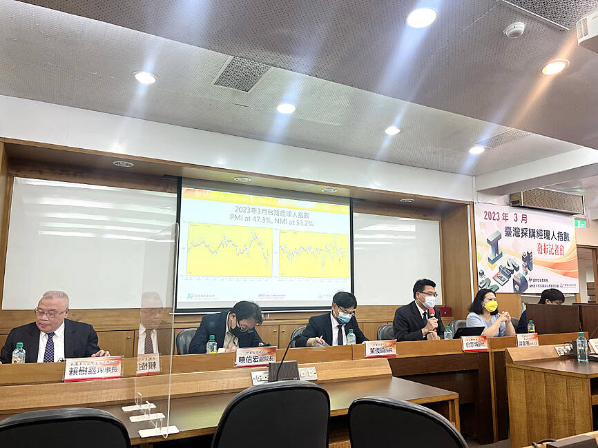 The official manufacturing purchasing managers’ index (PMI) last month returned to contraction, as the collapses of US regional banks sapped restocking demand and raw material prices, the Chung-Hua Institution for Economic Research (CIER, 中華經濟研究院) said yesterday.