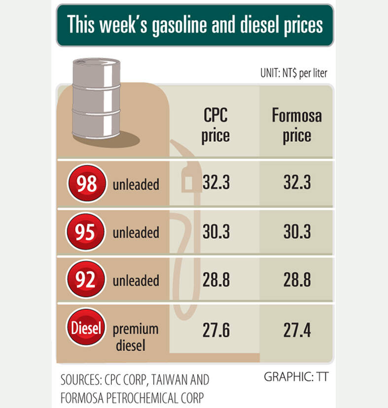 The rises in fuel prices following drops of NT$1.0 per liter for gasoline and NT$0.2 per liter for diesel comes after international crude oil prices rose last week on the back of better-than-expected US employment figures for last month and an expanded output cut by OPEC+ this month, CPC said.
