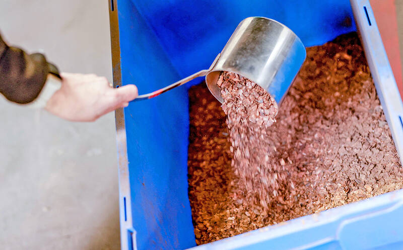 The plant, one of the largest in Europe, takes delivery of the used cocoa shells via a network of gray pipes from a neighboring chocolate factory.