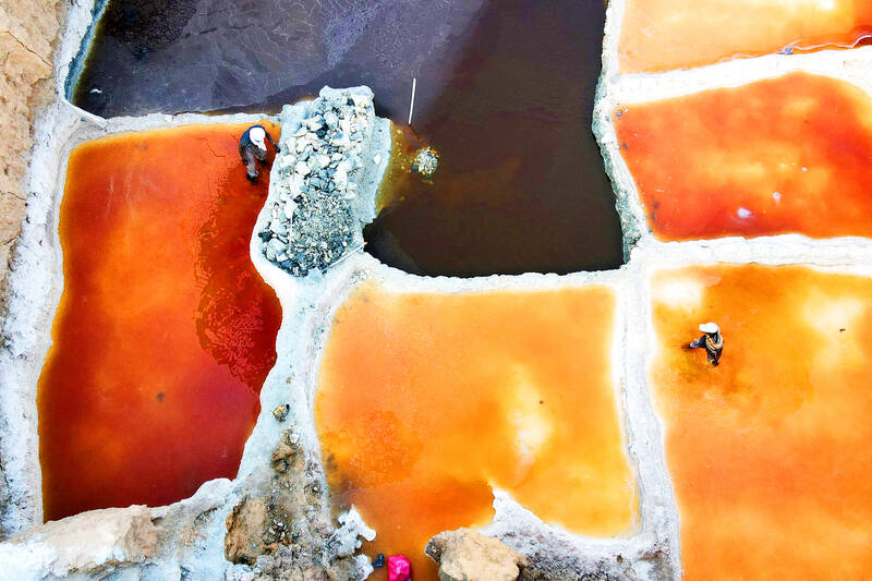 Over centuries, hundreds of pits have been dug by hand and then filled with water to leach salt from the local rock.