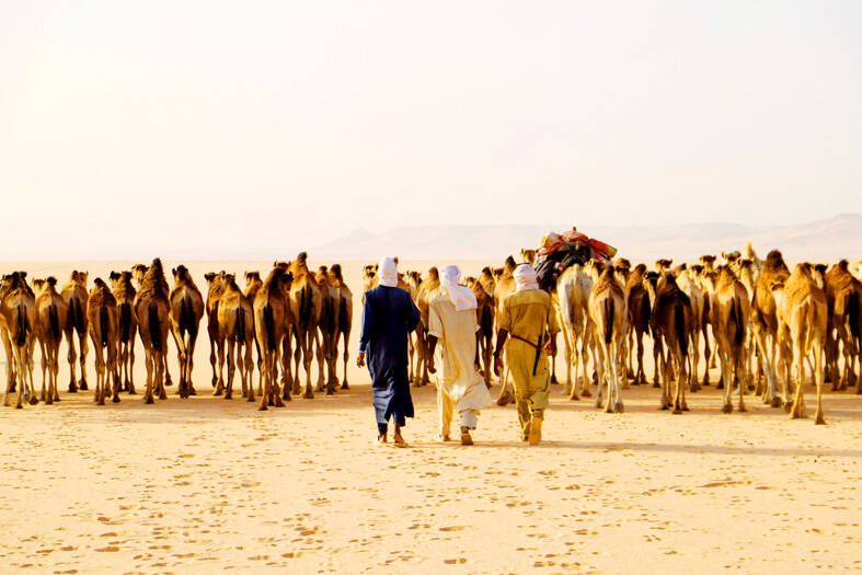 The camel caravans still stop over in Bilma, where the vast majority of residents live in traditional houses with walls of salt and clay drawn from nearby quarries.