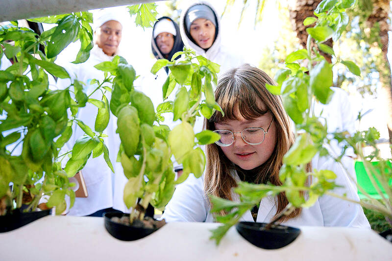 On a Thursday morning, about a dozen students sat at wooden desks before donning white coats to enter a laboratory at the back of the classroom. There Darian Jacobsen, a passionate cultivation teacher, showcased pruning techniques before moving on to some commonsense tips that learners write down in their notebooks.