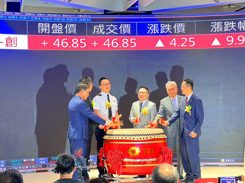 The low-cost carrier became the 10th company to launch an initial public offering (IPO) on the main bourse this year. It was also the first time an airline has gone public on the TWSE since EVA Airways Corp’s (長榮航空) listing in 2001.