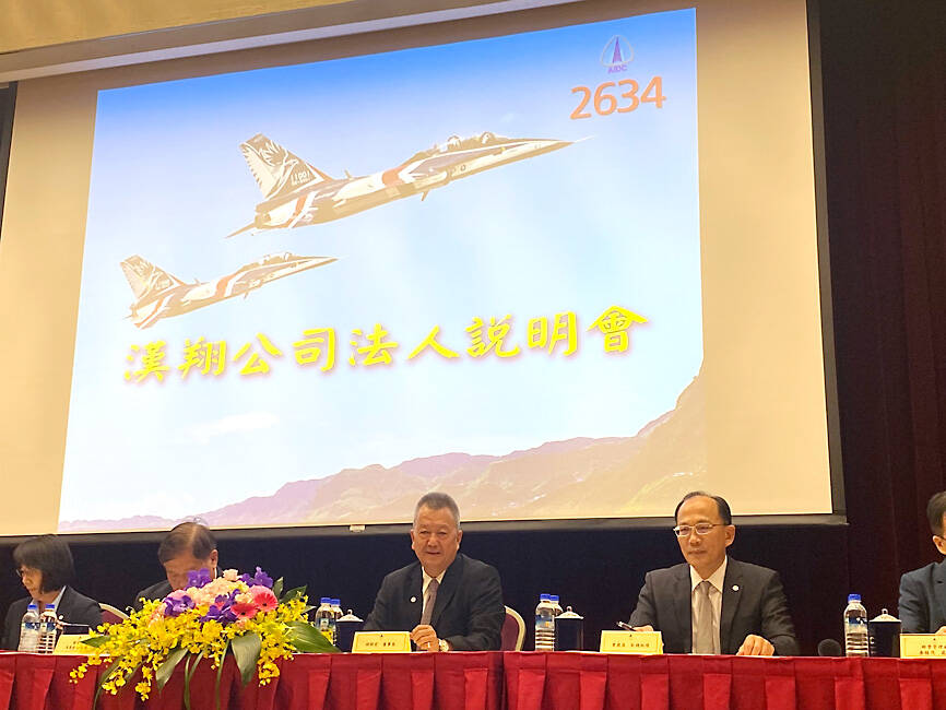 Shares in Aerospace Industrial Development Corp (AIDC, 漢翔航空) yesterday surged by the 10 percent daily limit after the military aircraft manufacturer laid out a bullish outlook amid rising threats from China.