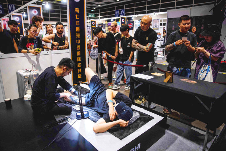 Surrounded by admiring onlookers, the 47-year-old is among the 130 tattoo artists who have set up stalls at the Hong Kong China International Tattoo Exhibition running until today, where attendees can pick out designs from an eclectic lineup and get inked on the spot.