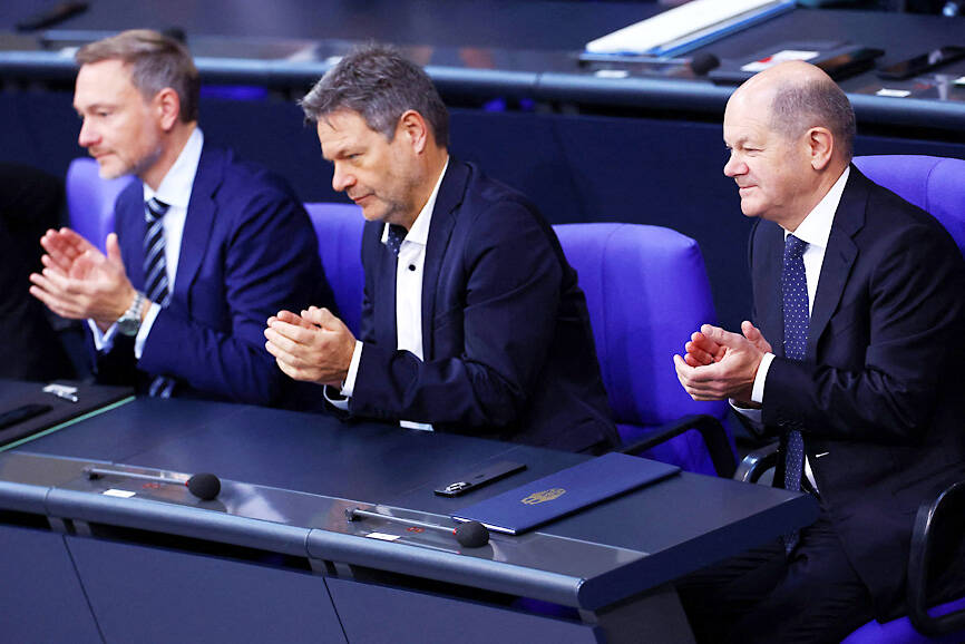German Chancellor Olaf Scholz and German Minister for Economic Affairs and Climate Action Robert Habeck have promised to solve investment subsidy issues for Taiwan Semiconductor Manufacturing Co (TSMC, 台積電) and Intel Corp, despite the country’s budget woes.