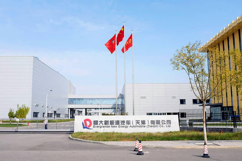 A top executive of Chinese property giant Evergrande Group’s (恆大集團) electric vehicle company has been detained by police in the latest sign of trouble for the world’s most heavily indebted property developer.