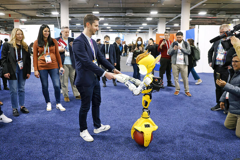 Attendees look at Miroki, a robot used for collective spaces, welcoming and guidance at the 2024 CES at The Venetian Expo in Las Vegas, Nevada, yesterday. CES, the world’s largest annual consumer technology trade show, which took place from Tuesday until yesterday, is where industry manufacturers, advertisers and tech-minded consumers converge to get a taste of innovations coming to the market each year.