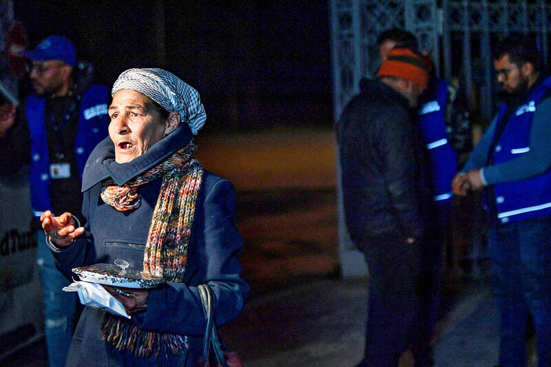On a corner by the entrance to Tunis zoo, Leila waits for a hot meal from the Tunisian capital’s “Restaurant of Love” in a cardboard shelter where she and her dogs sleep.
