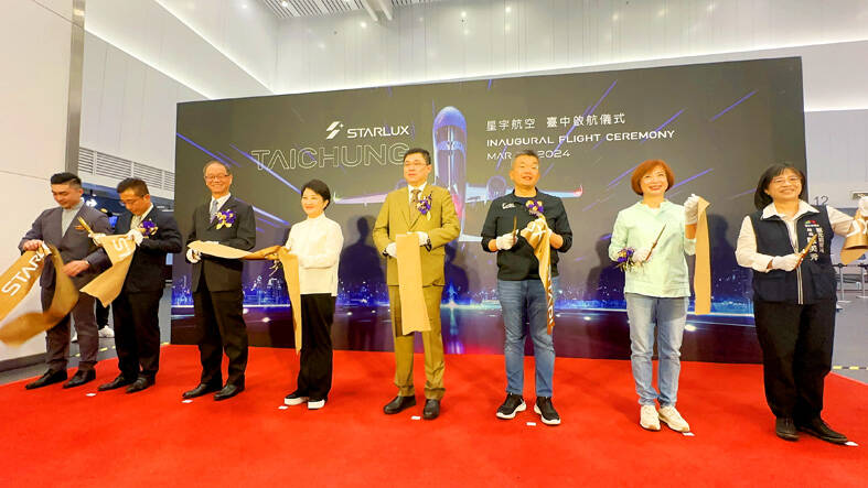 The new routes from Taichung marked a milestone for the young airline, which previously flew to 23 destinations from Taiwan Taoyuan International Airport, Starlux chairman Chang Kuo-wei (張國煒) said at the flight inauguration ceremony.