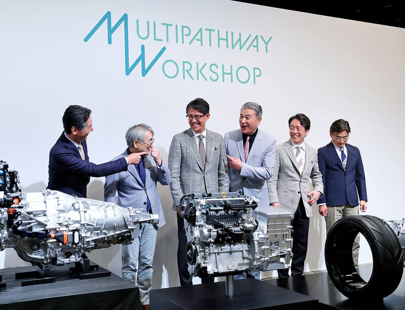 Toyota Motor Corp yesterday showcased next-generation engines that can be used in vehicles as varied as hybrids and those running on biofuel, as it targets tougher emissions standards and doubles down on its strategy of selling more than just electric vehicles (EVs).