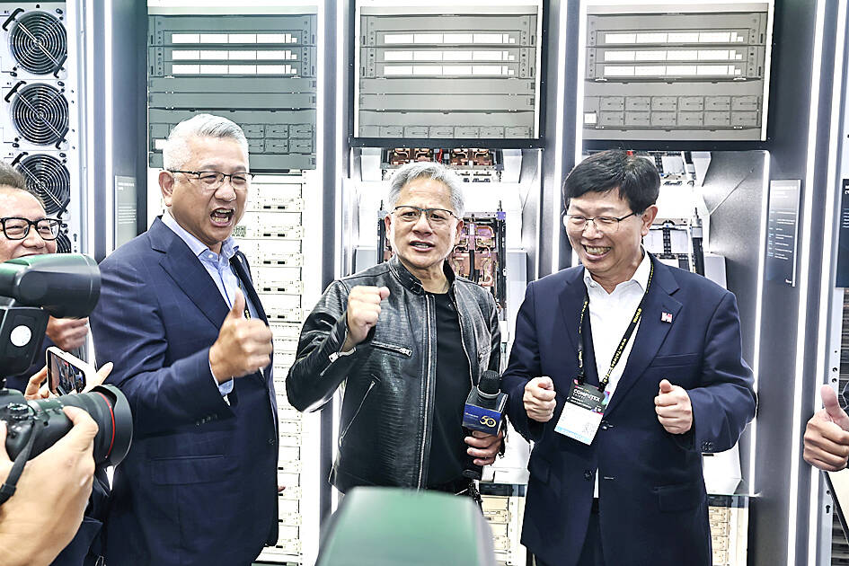 The company’s announcement came as Nvidia CEO Jensen Huang (黃仁勳) and Hon Hai chairman Young Liu (劉揚偉) met yesterday at a booth at Computex Taipei.