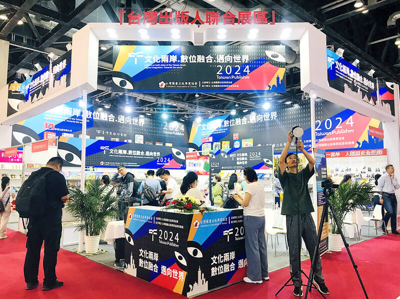 People visit a booth set up by the Publishers’ Association of Taiwan on the first day of the Beijing International Book Fair yesterday. The event features 1,600 exhibitors, including 1,050 from 71 countries and areas around the world, showcasing more than 220,000 Chinese and foreign books. The fair runs through Sunday at the China National Convention Center in Beijing.