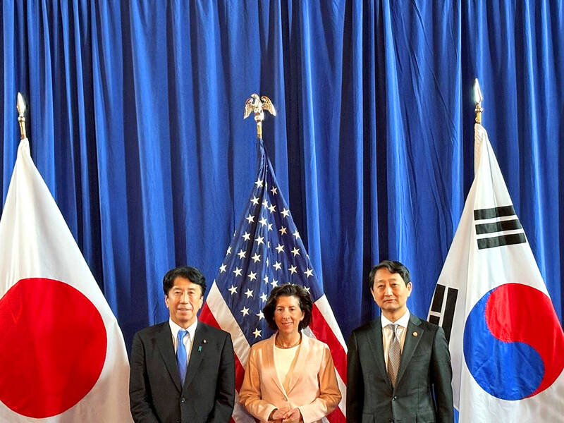 Commerce and trade ministers from the US, Japan and South Korea on Wednesday vowed to cooperate on strategic issues, including artificial intelligence (AI) safety, export controls, clean energy and semiconductor supply chains.