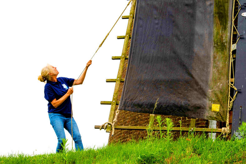 Perched some 10m on one of the four wings of the mill, built in 1866, Wessels tied canvas over the wooden slats. She then scarpered down and ran around the structure to release a brake to set the creaking blades in motion.