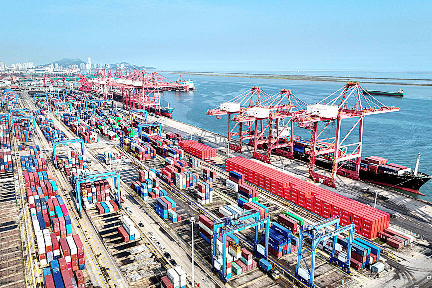 “Judging from the current situation, external demand is weakening,” Australia and New Zealand Banking Group Ltd senior China strategist Xing Zhaopeng (邢兆鵬) said. “Even though momentum is still strong in the electronics sector, the cooling of overall manufacturing activity will definitely affect trade.”
