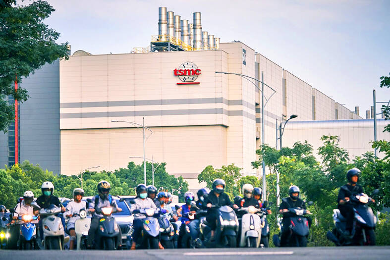 Taiwan Semiconductor Manufacturing Co (TSMC, 台積電) has secured three construction permits for its plan to build a state-of-the-art A14 wafer fab in Taichung, and is likely to start construction soon, the Central Taiwan Science Park Bureau said yesterday. Speaking with CNA, Wang Chun-chieh (王俊傑), deputy director general of the science park bureau, said the world’s largest contract chipmaker has received three construction permits — one to build a fab to roll out sophisticated chips, another to build a central utility plant to provide water and electricity for the facility and the other to build three office buildings. With the three permits, TSMC